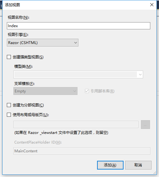 其次:右键点击index建立Index视图。(不选择使用母版页)