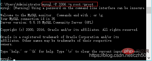 如下图:在dos窗口中输入命令mysql -h localhost -P 3306 -u root -proot