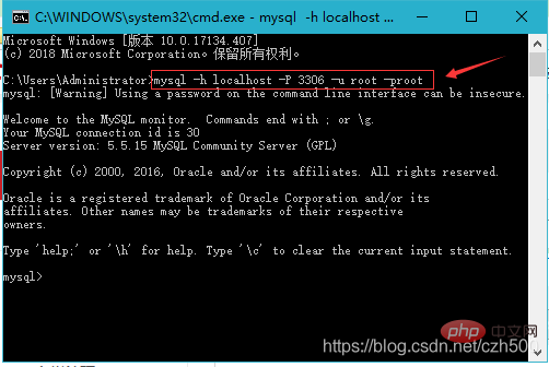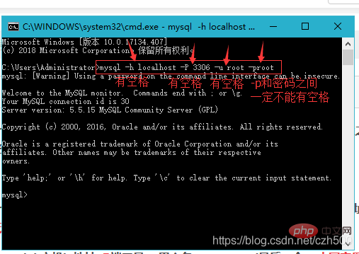 注意:如果是本机的话,主机ip和端口号可以不写(即主机ip和端口号可以省略),直接写成mysql -u root -proot