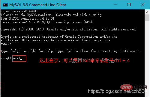 我们要退出mysql数据库的登录,怎么退出呢?输入exit回车即可