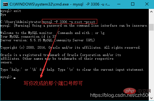 如果是本机,但是端口号你改成了其他的端口号,不是默认的3306了,比如你把端口号改成了6688,那你就加上端口号,即mysql -P 6688 -u root -proot