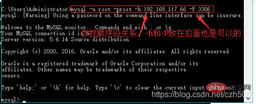 参数顺序是没关系的,-h和-P放在后面也是可以的,如下