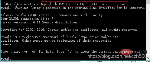 mysql -h localhost -u root -proot或者mysql -h 127.0.0.1 -u root -proot或者mysql -h 192.168.117.66 -u root -proot