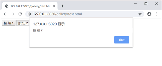 在浏览器中预览,单击不同的按钮,则浏览器会自动显示按钮的名称。效果如图所示: