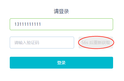 最近在做一个Vue项目,前端通过手机号、验证码登录,获取验证码按钮需要设置60s倒计时(点击一次后,一分钟内不得再次点击)。先看一下效果图: 输入正确格式的手机号码后,“获