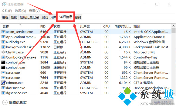 1.按下键盘上的"crtl+alt+del"打开"任务管理器",点击"详细信息";