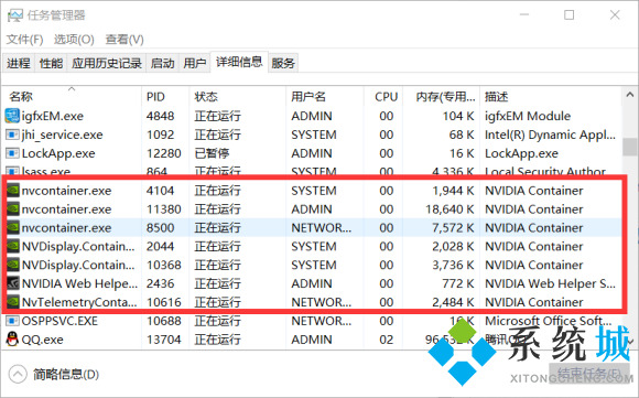 2.在"详细信息"页下找到和英伟达nvida有关的服务,将其全部设置为"打开"或者"自动";