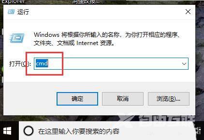 1、win+R组合打开运行,或者从搜索栏搜索“运行”,输入cmd打开doc窗口,回车。