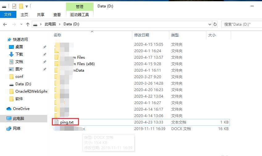 4、打开ping.txt文件夹,即可看到ping测试的结果。