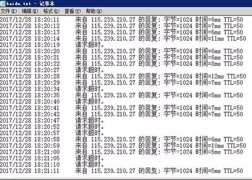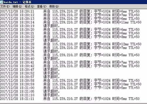 判断网络质量咋样,我们第一时间想到的就是ping,那么有没有一种方法可以在ping的时候加入时间戳并把ping记录写入到文本里面,当然是有的啦!啥意思图,看下图啦: