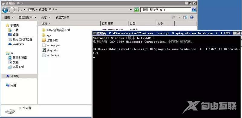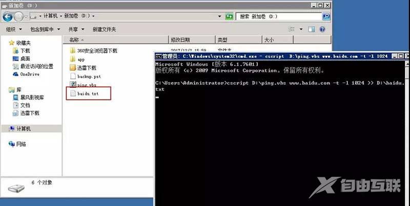 CD:\ping.vbs www.baidu.com -t -l 1024 >> D:\baidu.txt