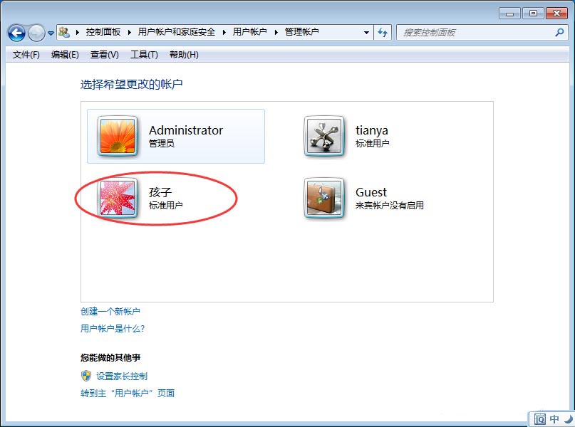 9、管理帐号密码设置好了之后,点击【孩子】账户