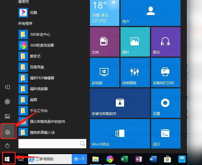 1、点击电脑左下角【开始】菜单栏,选择【设置】。