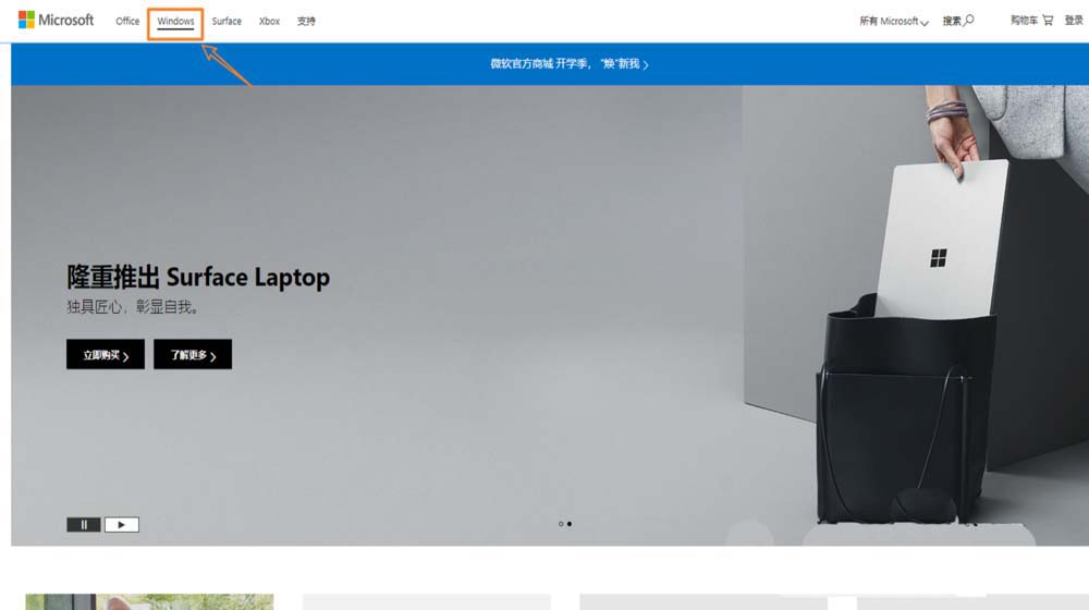 2.打开微软官网页面。