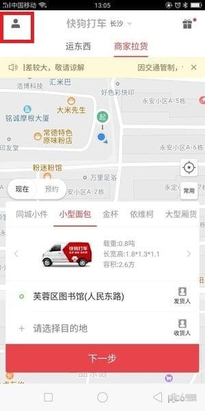 1、打开快狗打车App,点击左上角的【小人图标】;