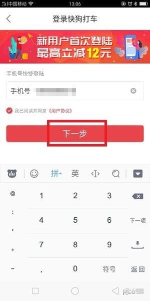 3、输入手机号并且勾选同意用户协议后点击【下一步】;