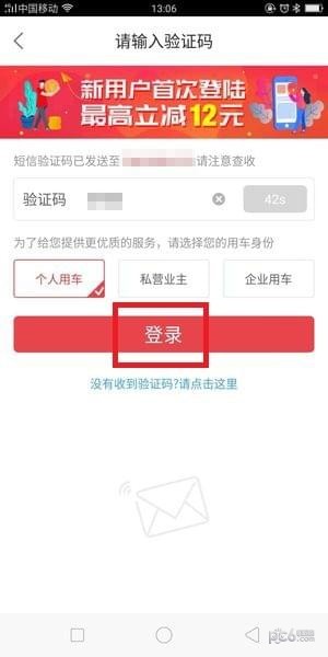 4、输入验证码,选择好用车身份,点击【登录】就注册成功啦。
