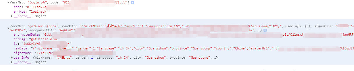 在 uni.login 和 uni.getUserInfo 被调用后,你可以获取到以下值用于继续请求后端给你的接口:
