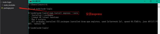 安装 Express 并将其保存到依赖列表中: 打开cmd命令行,定位到项目目录,使用命令行 cnpm install express --save 如下图: