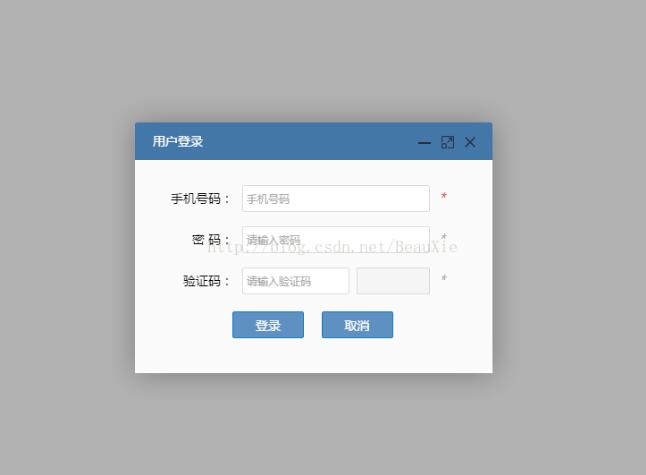 layer是一款近年来备受青睐的web弹层组件,官网地址是:http://layer.layui.com/ 可以从官网上下载最新版本. 使用layer实现登录弹框,登录成功以后关闭弹框,并调用父窗口方法。 1.界面如下