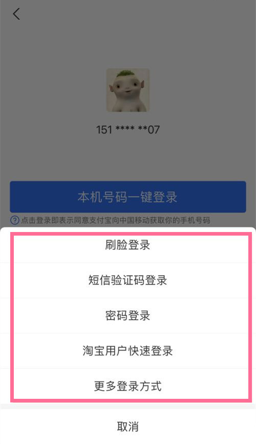 支付宝登录方式有4种,分别是刷脸登录、短信验证码登录、密码登录和淘宝用户快速登录。