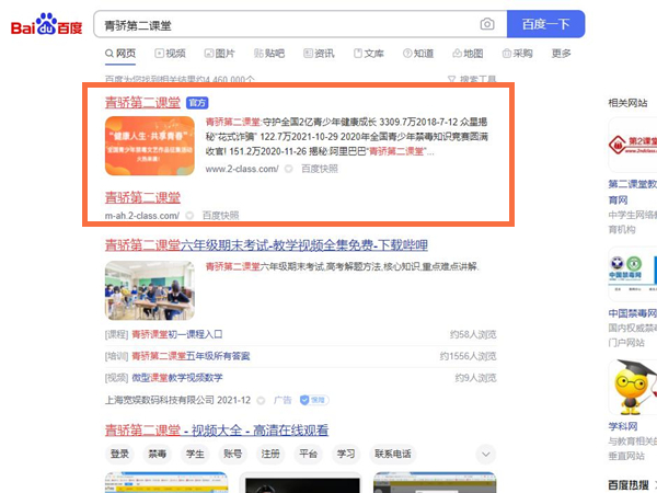 青骄第二课堂无需注册,如果学校接入了平台,由学校统一分配账号和密码,再使用账号和密码直接登录即可,登录的具体操作步骤如下: 1、在浏览器中搜索“青骄第二课堂”官方网