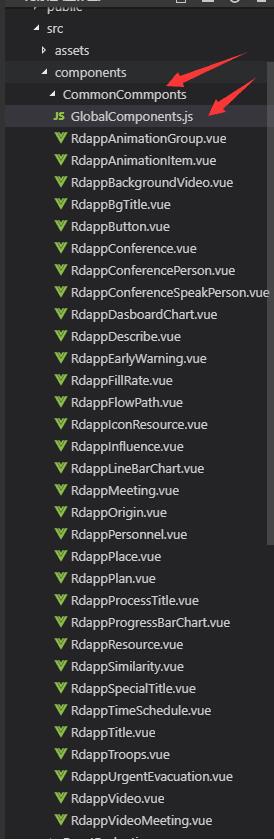 这里新建了一个文件夹,其中js文件是上面的配置文件,用于全局注册并引用的,然后下面是封装的组件,请使用驼峰命名法。