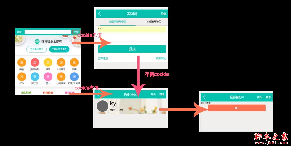 1、大概流程 a、登录:前端使用validate对输入信息进行验证 验证成功则成功跳转到用户信息页并存储cookie值 b、首页跳转用户信息页:判断cookie值cookie存在并不为空则跳转用户信息页,若