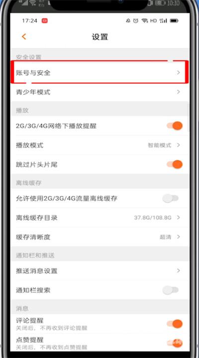 2、在设置里打开账号与安全