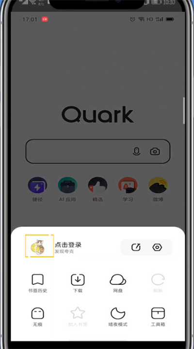 1、首先我们打开夸克 2、点击右下方的三条杠 3、点击个人头像 4、点击头像右下方的退出图标 5、点击退出即可 注:本文适用于夸克V4.1.0版本。 夸克V4.1.0版本