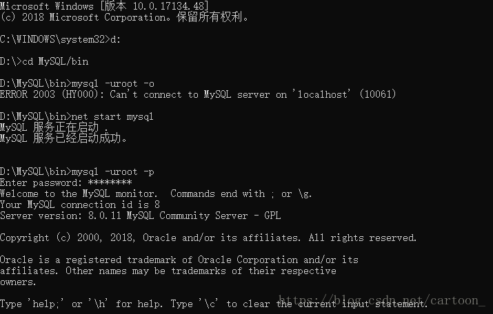 1.以管理员身份打开cmd,切换到MySQL的bin目录