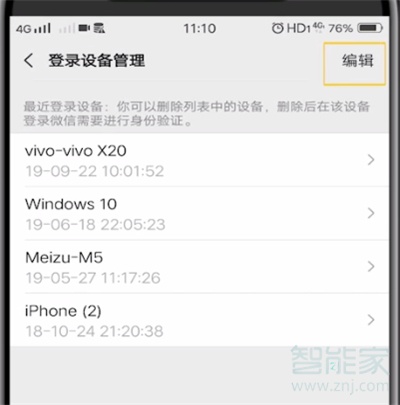 1.首先我们打开微信,点击右下方我 2.点击设置,点击帐号与安全 3.点击登录设备管理,点击右上角的编辑 4.点击登录设备后的删除即可