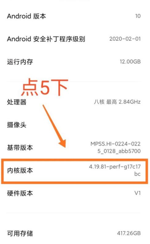 打开手机设置,在我的设备中点击内核版本五下