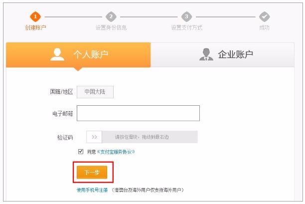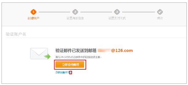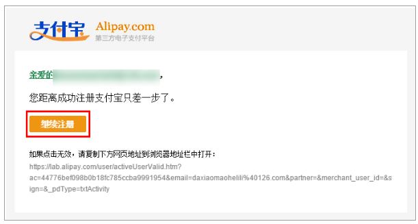 激活支付宝账户的邮件,继续注册