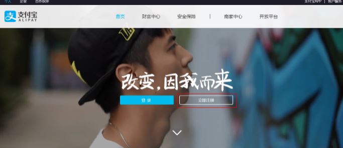 打开支付宝官网,点击立即注册