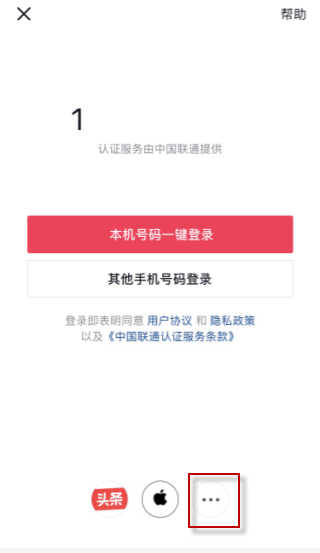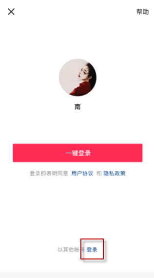 1、打开抖音app,在登录界面点击底部的以其他账号登录;