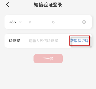 3、进入短信验证登录界面,点击获取验证码,输入验证码即可登录。