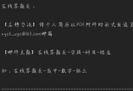 将个人简历以PDF附件的形式发送到xyst_ugc@163.com邮箱中,邮件主题在线答题员,学段还有科目和姓名。