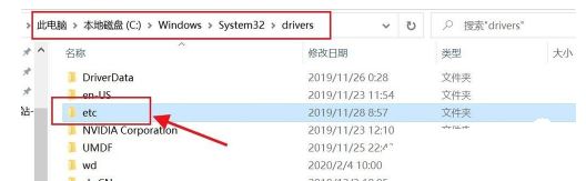 进入路径C:\Windows\System32\drivers找到etc文件夹点击进入