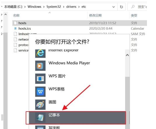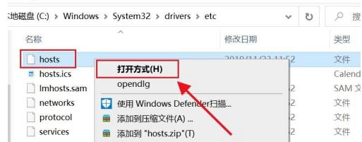 右键选择hosts选择打开方式