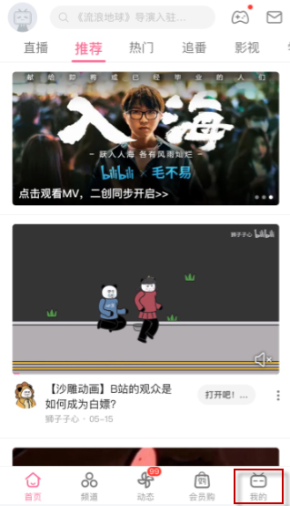 1、打开b站app,点击右下角的我的;