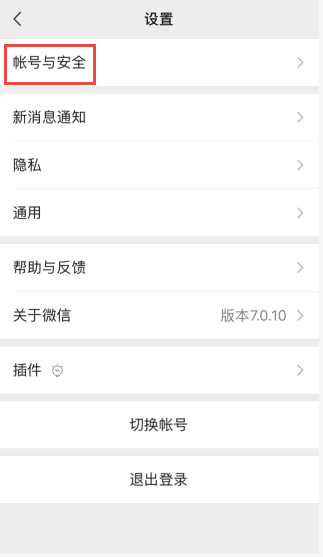 2、在设置界面选择账号与安全;