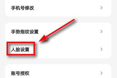 2、之后就可以在“安全中心”功能界面中看到“人脸设置”的功能选项了,点击进入即可。