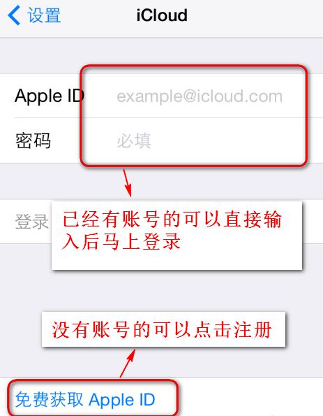 有账号的直接登录,没有账号的点击免费获取AppleID