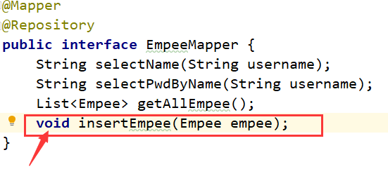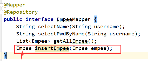 可以发现出错原因在于EmpeeMapper文件的insertEmpee方法,而且是返回值类型的错误