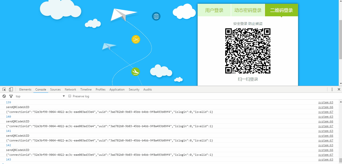 qrcode.client.sendQRCodeUUID = function (uuid) { console.log("sendQRCodeUUID");
