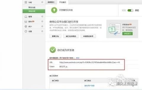 待认证通过后,到微信公众平台,在“高级设置”里选择开发者模式----成为开发者。填写互联在线提供的url和token,还有开发者凭据的Appid和AppSecret。与公众号进行绑定。