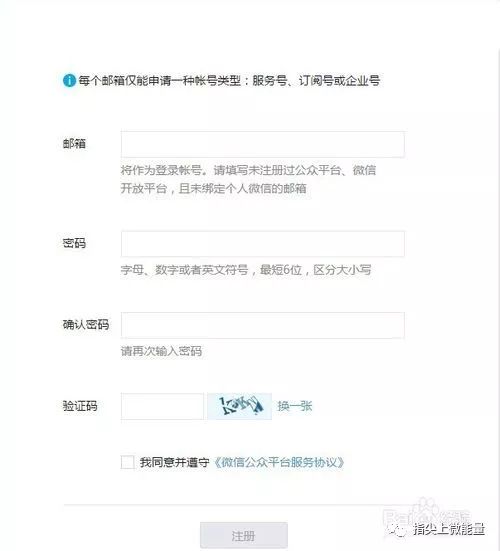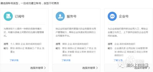 选择账号类型,前段时间腾讯刚刚推出了“企业号”,如果是企业的话建议使用企业号进行注册,帮助企业建立与员工、上下游供应链及企业应用间的连接。下面选择使用“服务号”的账号类型。