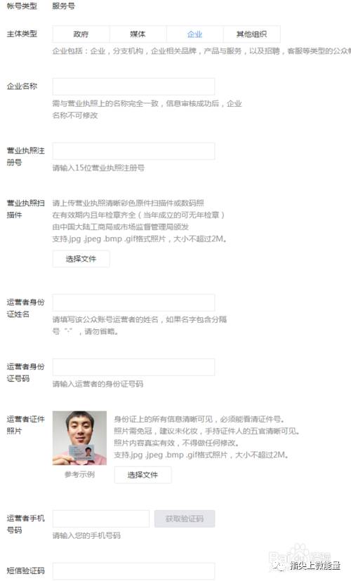 填写“用户信息”,将事先准备好的企业营业执照和运营者证件照片上传,并写上运营者手机号进行验证,点击继续。到这里,微信公众账号注册完成。最后需要提交认证方可使用自定义菜单接口,微信公众号认证需要300元/次,一般1-5个工作日。待认证完成,进行以下的接口配置流程。