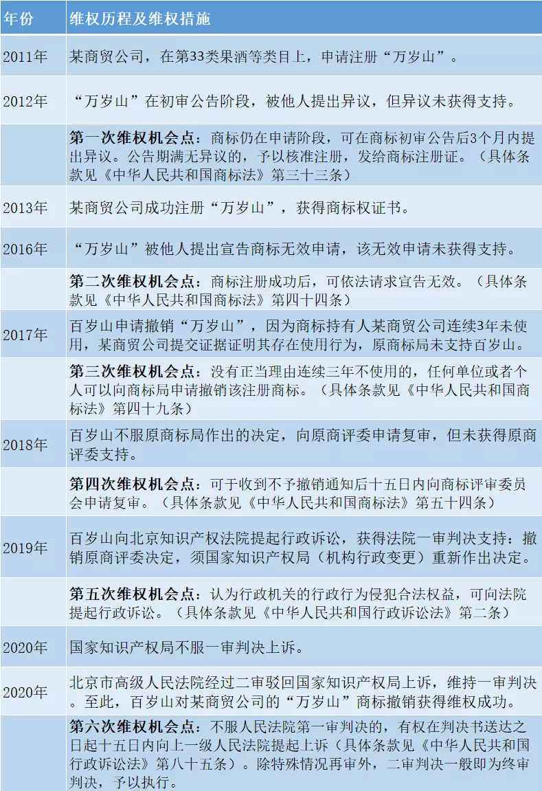 从“百岁山”成功维权的案例来看,品牌胜诉的主要依据是没有正当理由连续三年不使用可申请撤销注册商标。